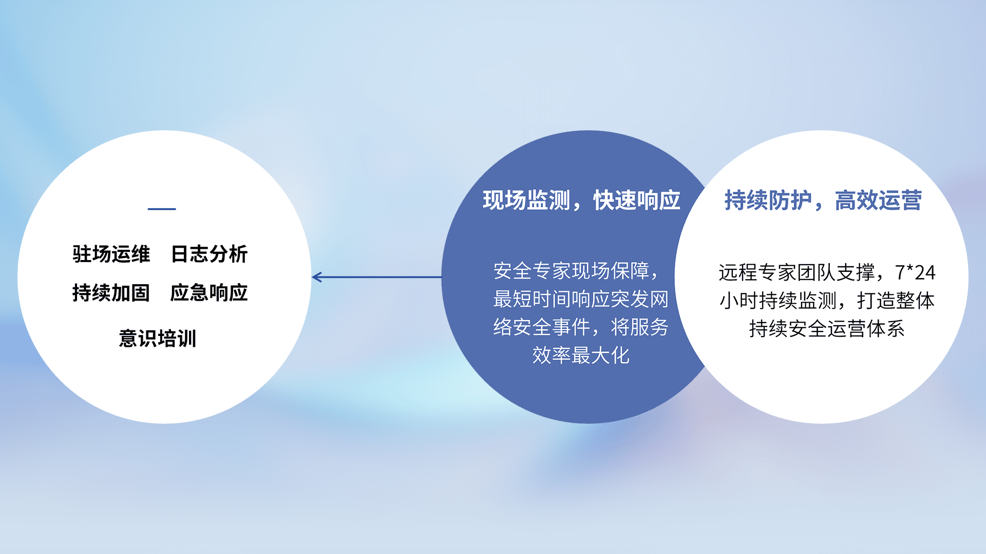 7X24小时持续监测安全事件,保持安全策略有效性,降低资产脆弱性风险,,,精准拦截黑客攻击,,,减少被黑客利用的机会,,,,第一时间遏制,,,降低损失。。。。